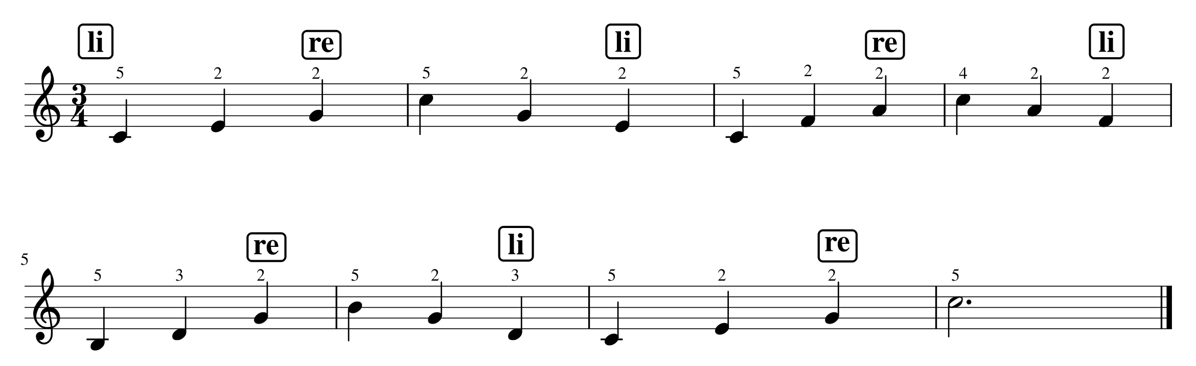 Hier ein Fingersatz für einen C-Dur-Dreiklang: