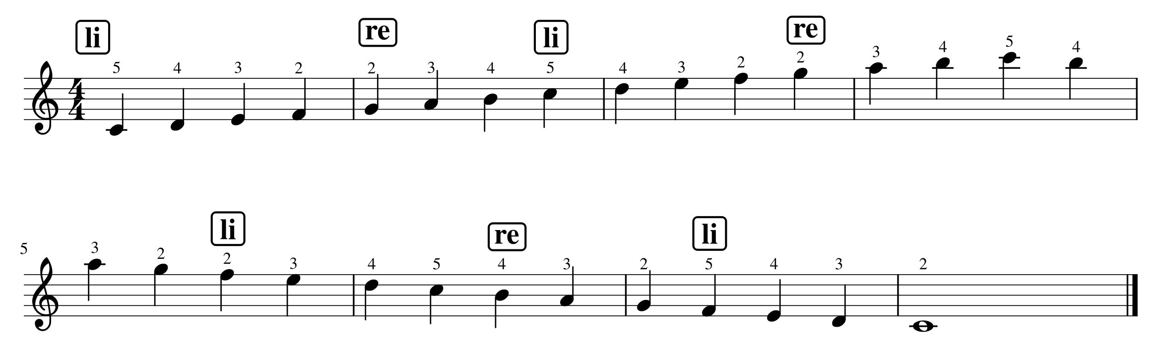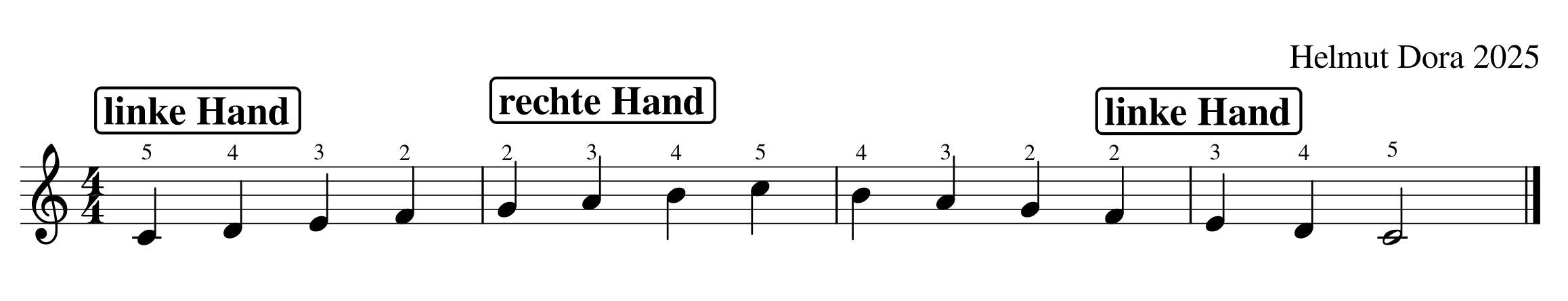 Für eine Tonleiter innerhalb einer Oktave sieht der Fingersatz dann folgendermaßen aus: